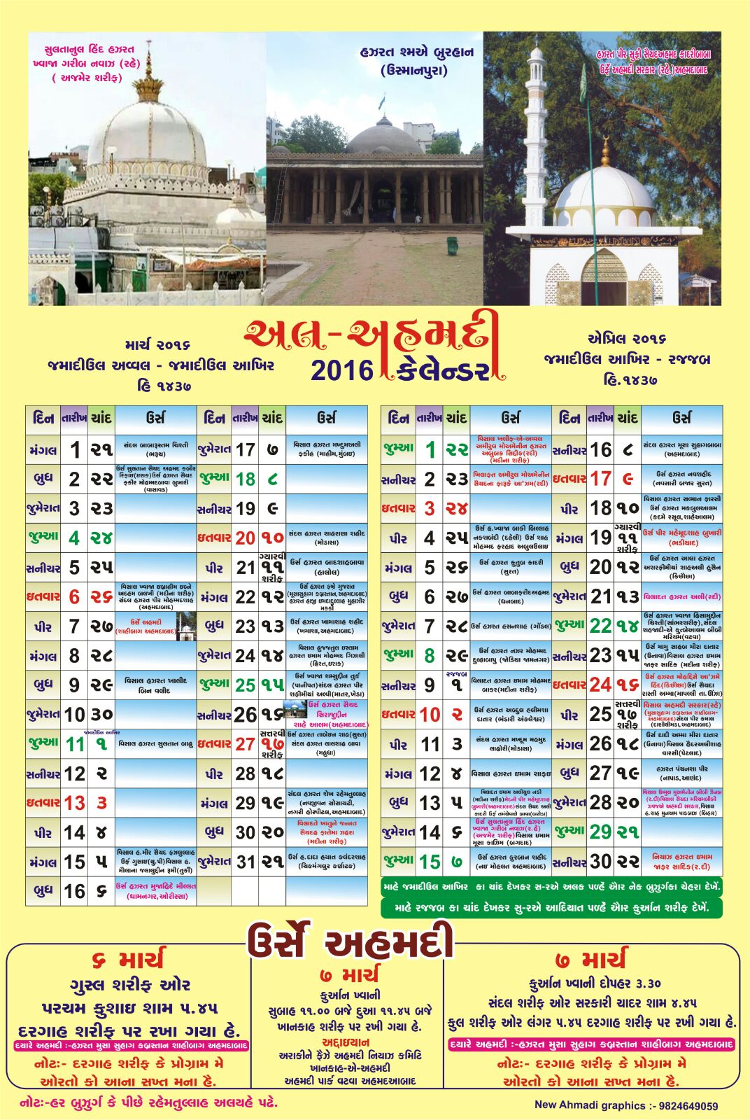 Literature AL AHMADI Calendar 2016 Shijra Sharif in Gujarati and Urdu Zikr Sharif Ka Tarika (Gujarati) Shahenshah E Bakrol Hazrat Saiyed Mehmoodshahdada (R.A.)